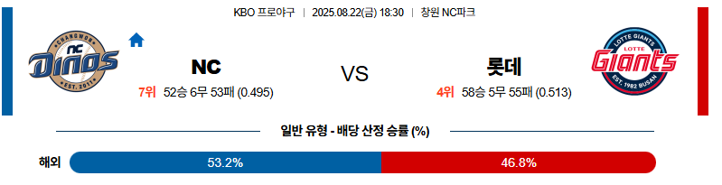 NC 대 롯데 KBO 08월22일 맞대결 생중계, 스포츠중계, 스포츠분석