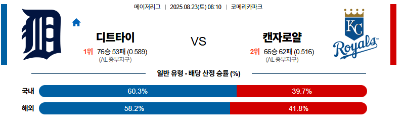 디트로이트 대 캔자스시티 MLB 08월23일 맞대결 생중계, 스포츠중계, 스포츠분석
