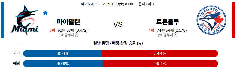 마이애미 대 토론토 MLB 08월23일 맞대결 생중계, 스포츠중계, 스포츠분석