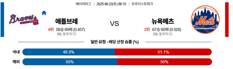 애틀랜타 대 뉴욕메츠 MLB 08월23일 맞대결 생중계, 스포츠중계, 스포츠분석