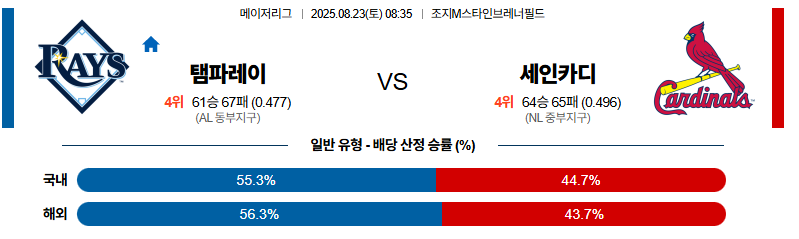 탬파베이 대 세인트루이스 MLB 08월23일 맞대결 생중계, 스포츠중계, 스포츠분석