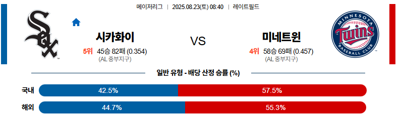 시카고W 대 미네소타 MLB 08월23일 맞대결 생중계, 스포츠중계, 스포츠분석