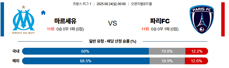 마르세유 대 파리FC 리그앙 08월24일 맞대결 생중계, 스포츠중계, 스포츠분석
