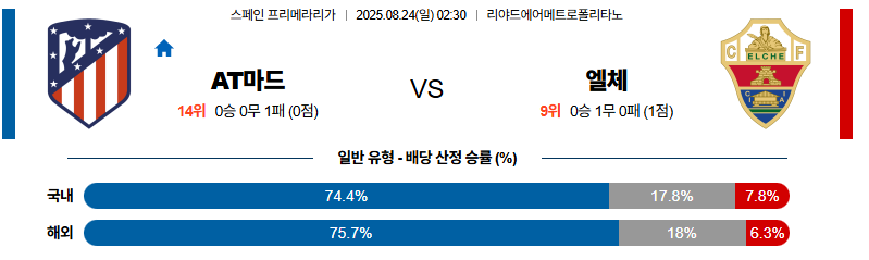 아틀레티코마드리드 대 엘체 라리가 08월24일 맞대결 생중계, 스포츠중계, 스포츠분석
