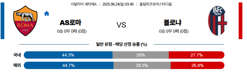로마 대 볼로냐 세리에A 08월24일 맞대결 생중계, 스포츠중계, 스포츠분석