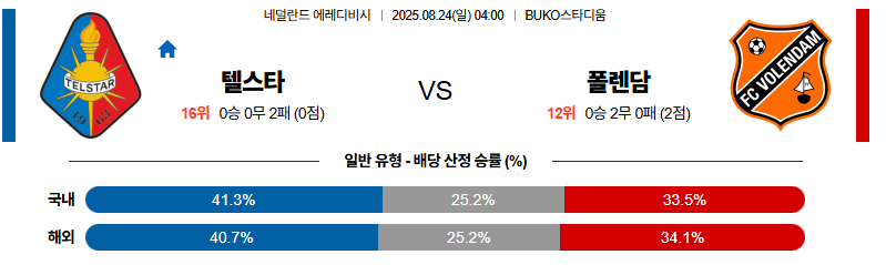 텔스타 대 폴랜담 에레디비지 08월24일 맞대결 생중계, 스포츠중계, 스포츠분석