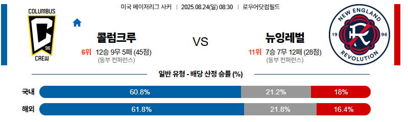콜럼버스크루 대 뉴잉글랜드레벌루션 메이저리그사커 08월24일 맞대결 생중계, 스포츠중계, 스포츠분석