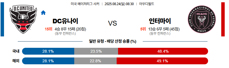 DC유나이티드 대 인터마이애미 메이저리그사커 08월24일 맞대결 생중계, 스포츠중계, 스포츠분석
