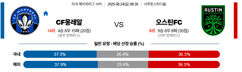 CF몬트리올 대 오스틴FC 메이저리그사커 08월24일 맞대결 생중계, 스포츠중계, 스포츠분석