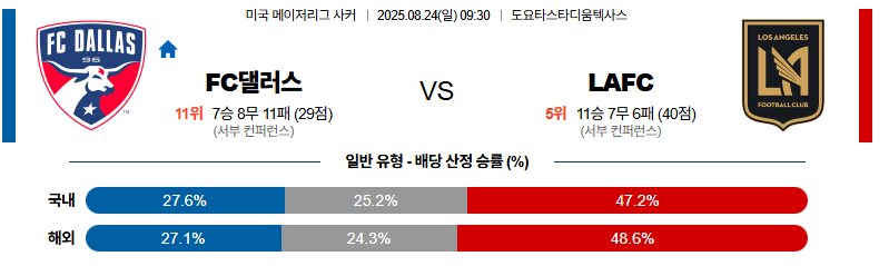 댈러스 대 LAFC 메이저리그사커 08월24일 맞대결 생중계, 스포츠중계, 스포츠분석