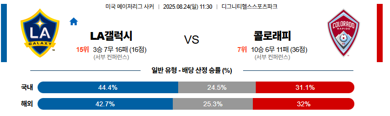 LA갤럭시 대 콜로라도 메이저리그사커 08월24일 맞대결 생중계, 스포츠중계, 스포츠분석