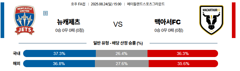 뉴캐슬제츠 대 맥아서불스 호주FFA 08월24일 맞대결 생중계, 스포츠중계, 스포츠분석