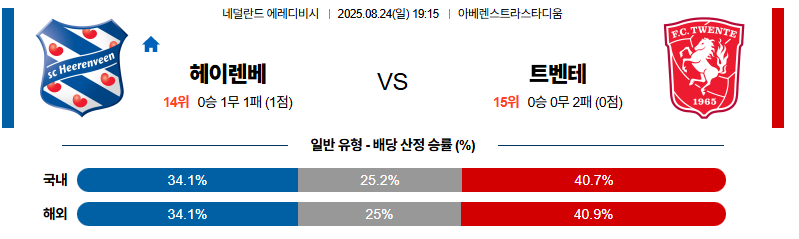 헤렌벤 대 트벤테 에레디비지 08월24일 맞대결 생중계, 스포츠중계, 스포츠분석