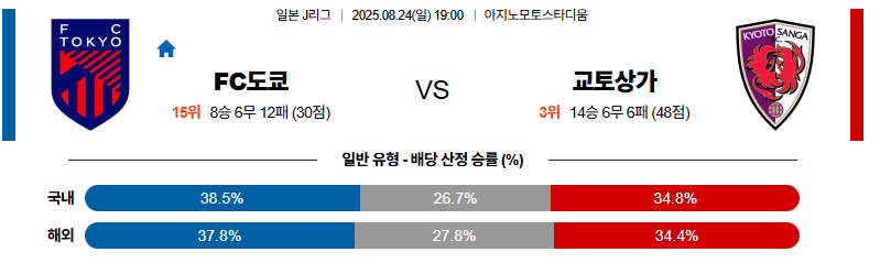 FC도쿄 대 교토상가 J리그1 08월24일 맞대결 생중계, 스포츠중계, 스포츠분석