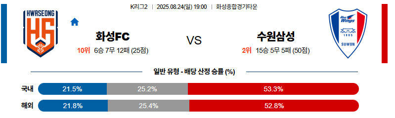 화성FC 대 수원삼성 K리그2 08월24일 맞대결 생중계, 스포츠중계, 스포츠분석