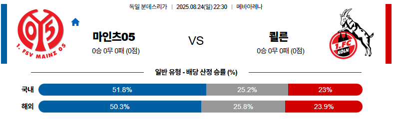 마인츠 대 쾰른 분데스리가 08월24일 맞대결 생중계, 스포츠중계, 스포츠분석