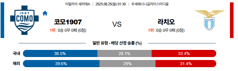 코모 대 라치오 세리에A 08월25일 맞대결 생중계, 스포츠중계, 스포츠분석