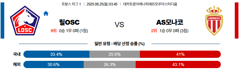 릴 대 모나코 리그앙 08월25일 맞대결 생중계, 스포츠중계, 스포츠분석