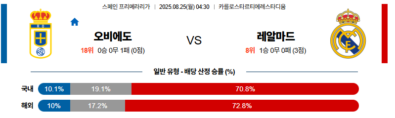 오비에도 대 레알마드리드 라리가 08월25일 맞대결 생중계, 스포츠중계, 스포츠분석