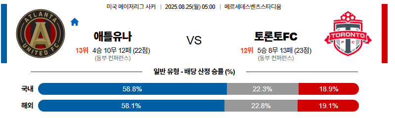 애틀랜타 대 토론토FC 메이저리그사커 08월25일 맞대결 생중계, 스포츠중계, 스포츠분석