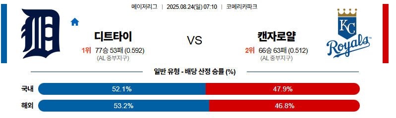 디트로이트 대 캔자스시티 MLB 08월24일 맞대결 생중계, 스포츠중계, 스포츠분석