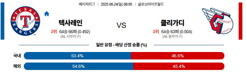 텍사스 대 클리블랜드 MLB 08월24일 맞대결 생중계, 스포츠중계, 스포츠분석