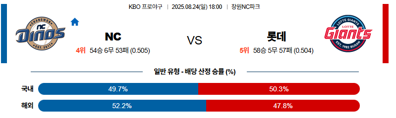 NC 대 롯데 KBO 08월24일 맞대결 생중계, 스포츠중계, 스포츠분석