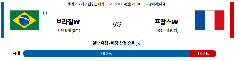 브라질 대 프랑스 세계여자배구선수권대회 08월24일 맞대결 생중계, 스포츠중계, 스포츠분석