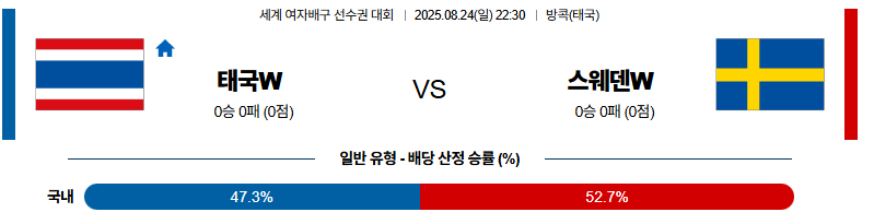 태국 대 스웨덴 세계여자배구선수권대회 08월24일 맞대결 생중계, 스포츠중계, 스포츠분석
