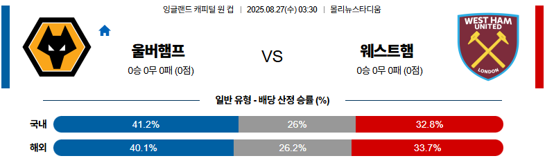 울버햄튼 대 웨스트햄 잉글랜드캐피털원컵 08월27일 맞대결 생중계, 스포츠중계, 스포츠분석