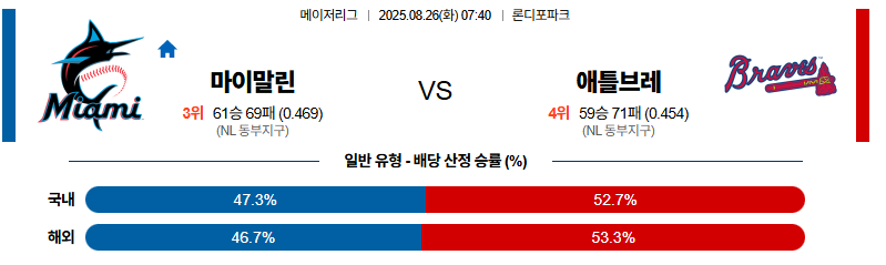 마이애미 대 애틀랜타 MLB 08월26일 맞대결 생중계, 스포츠중계, 스포츠분석