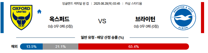 옥스포드 대 브라이튼 잉글랜드캐피털원컵 08월28일 맞대결 생중계, 스포츠중계, 스포츠분석