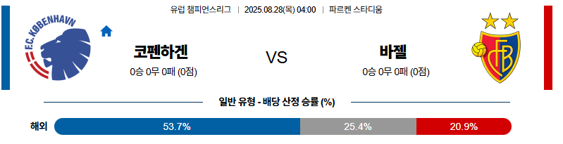 코펜하겐 대 바젤 UEFA챔피언스리그 08월28일 맞대결 생중계, 스포츠중계, 스포츠분석