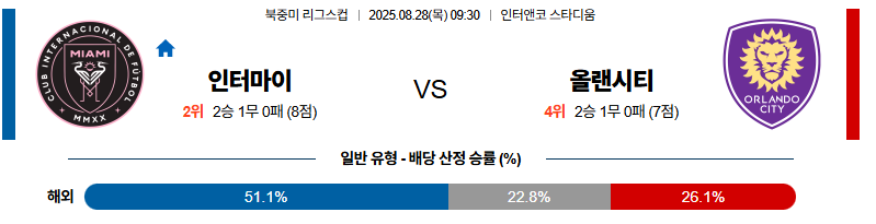 인터마이애미 대 올랜도시티 북중미리그스컵 08월28일 맞대결 생중계, 스포츠중계, 스포츠분석