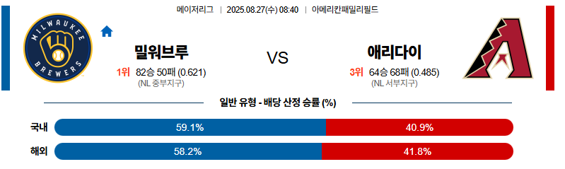 밀워키 대 애리조나 MLB 08월27일 맞대결 생중계, 스포츠중계, 스포츠분석