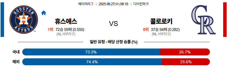 휴스턴 대 콜로라도 MLB 08월27일 맞대결 생중계, 스포츠중계, 스포츠분석