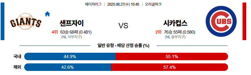 샌프란시스코 대 시카고컵스 MLB 08월27일 맞대결 생중계, 스포츠중계, 스포츠분석
