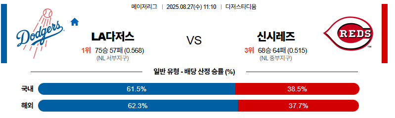LA다저스 대 신시내티 MLB 08월27일 맞대결 생중계, 스포츠중계, 스포츠분석