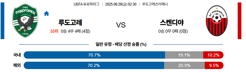 루도고레츠 대 스켄데자 UEFA유로파리그 08월29일 맞대결 생중계, 스포츠중계, 스포츠분석