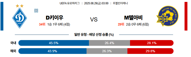 디나모키예프 대 마카비텔아비브 UEFA유로파리그 08월29일 맞대결 생중계, 스포츠중계, 스포츠분석
