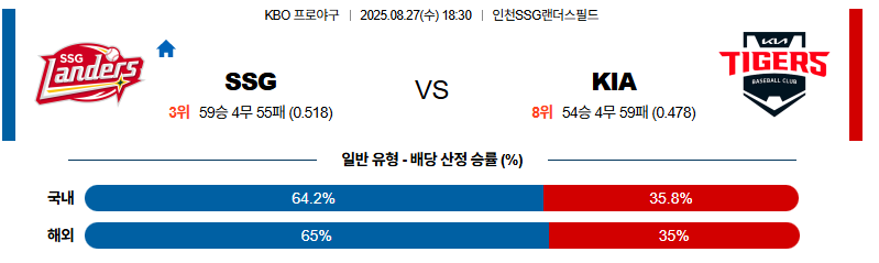 SSG 대 KIA KBO 08월27일 맞대결 생중계, 스포츠중계, 스포츠분석