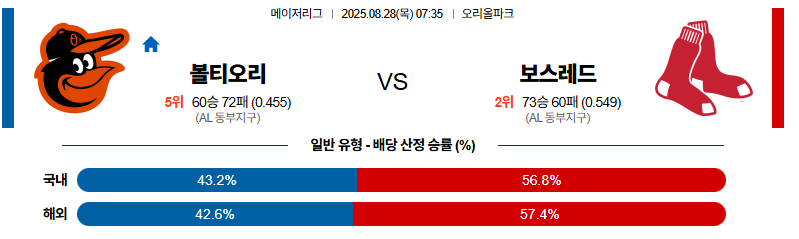 볼티모어 대 보스턴 MLB 08월28일 맞대결 생중계, 스포츠중계, 스포츠분석