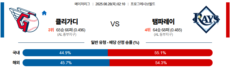 클리블랜드 대 탬파베이 MLB 08월28일 맞대결 생중계, 스포츠중계, 스포츠분석