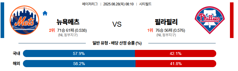 뉴욕메츠 대 필라델피아 MLB 08월28일 맞대결 생중계, 스포츠중계, 스포츠분석