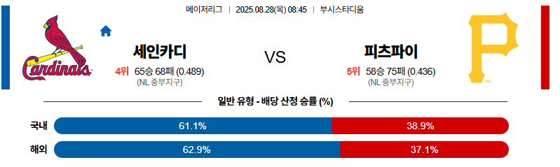 세인트루이스 대 피츠버그 MLB 08월28일 맞대결 생중계, 스포츠중계, 스포츠분석