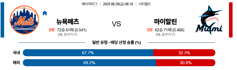 뉴욕메츠 대 마이애미 MLB 08월29일 맞대결 생중계, 스포츠중계, 스포츠분석
