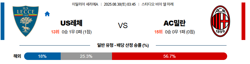 레체 대 AC밀란 세리에A 08월30일 맞대결 생중계, 스포츠중계, 스포츠분석