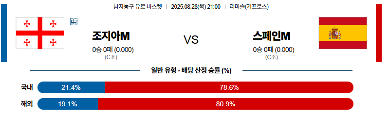 조지아 대 스페인 유로바스켓 08월28일 맞대결 생중계, 스포츠중계, 스포츠분석