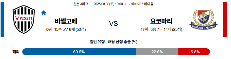 비셀고베 대 요코하마마리노스 J리그1 08월30일 맞대결 생중계, 스포츠중계, 스포츠분석
