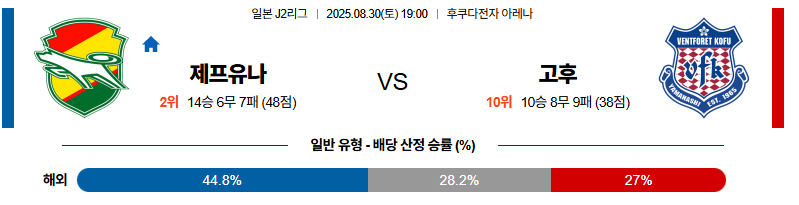 제프유나이티드 대 반포레고후 J리그2 08월30일 맞대결 생중계, 스포츠중계, 스포츠분석